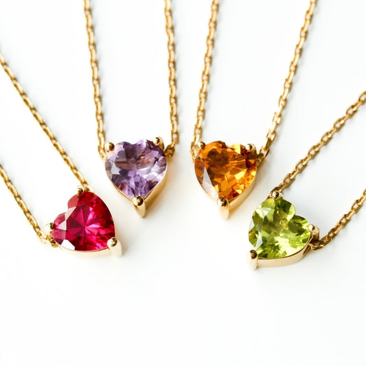 LUCY SUMMER Heart Necklace สร้อยคอ พร้อมจี้หัวใจฝังพลอยแท้ Heart Cut หัวใจ ขนาด 7 มม.