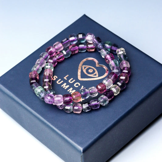 LUCY SUMMER กำไลข้อมือหินแท้ Multi-color Fluorite ฟูออไรท์ ขนาด 7 mm เหลี่ยม