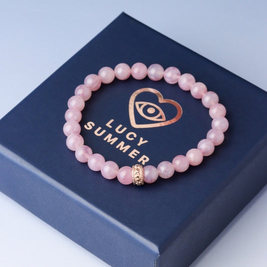 LUCY SUMMER กำไลหินแท้ Rose Quartz Madagascar ขนาด 6 mm. (Premium AAAAAAA) - โรสควอตซ์ (กำไลหินแท้ รับประกันหินแท้)