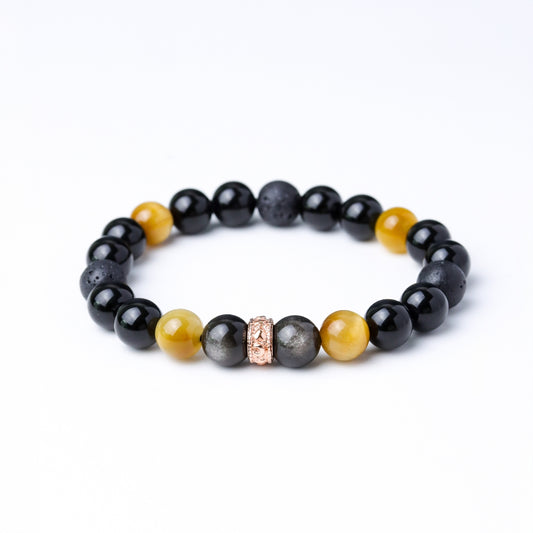 LUCY SUMMER กำไลข้อมือหินแท้ Obsidian, Golden Tiger Eye, Lava และ Onyx ขนาด 8 mm. พร้อม Spacer