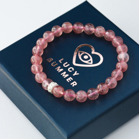 LUCY SUMMER กำไลข้อมือหินแท้ 8 mm Strawberry Quartz จาก Brazil (กำไลหินแท้ รับประกันหินแท้)