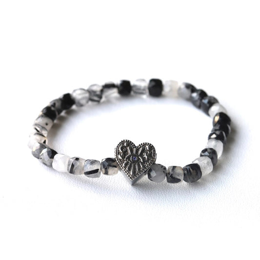LUCY SUMMER กำไลข้อมือหินแท้ ไหมดำ/แก้วขนเหล็ก (Black Rutilliated Quartz) เจียรสี่เหลี่ยมขนาด 5 มม