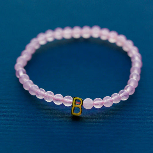 LUCY SUMMER กำไลข้อมือหินแท้ Rose Quartz (โรสควอตซ์) ขนาด 4 mm พร้อมจี้ตัวอักษร Alphabet A-Z
