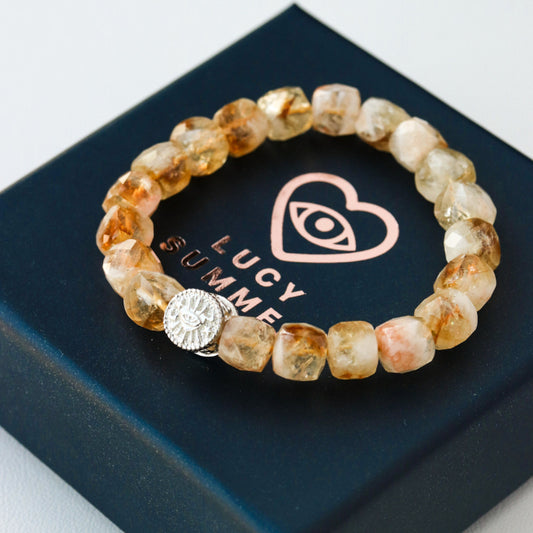 LUCY SUMMER กำไลข้อมือหินแท้ Citrine (ซิทรีน) เจียรทรงลูกบากศ์เหลี่ยมประกายเพชร ขนาดเส้นผ่านศูนย์กลาง 9 mm