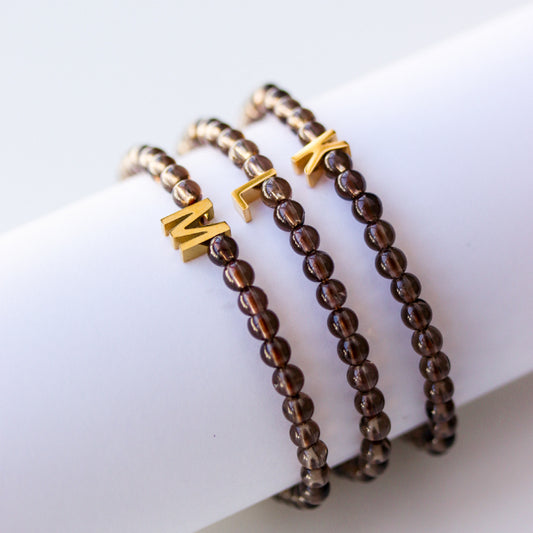 LUCY SUMMER กำไลข้อมือหินแท้ Smoky Quartz (สโมคกี้ ควอตซ์) ขนาด 4 mm พร้อมจี้ตัวอักษร Alphabet A-Z