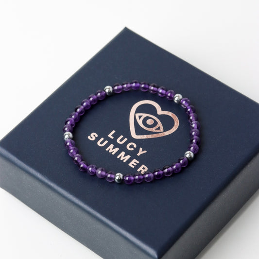 LUCY SUMMER กำไลข้อมือหิน Amethyst คั่นด้วย Hematite หรือ Pyrite ขนาด 4 มม.