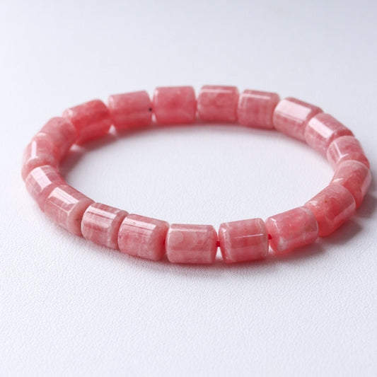 LUCY SUMMER กำไลข้อมือหินแท้ Rhodochrosite Block โรโดโครไซต์ เจียรรูปทรงกระบอก 8*12 mm