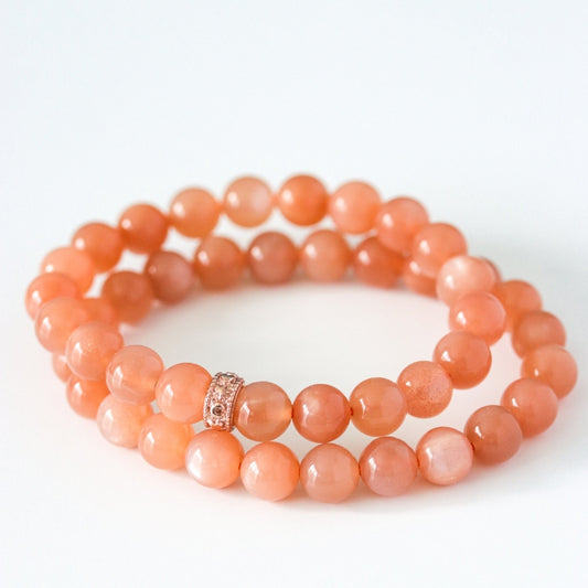 LUCY SUMMER กำไลข้อมือหิน Peach Moonstone พีชมูนสโตน ขนาด 8 มม