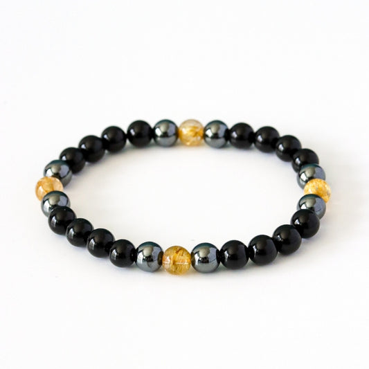 LUCY SUMMER กำไลข้อมือหินแท้ นิล ไหมทอง เฮมาไทท์ ขนาด 6 มม.