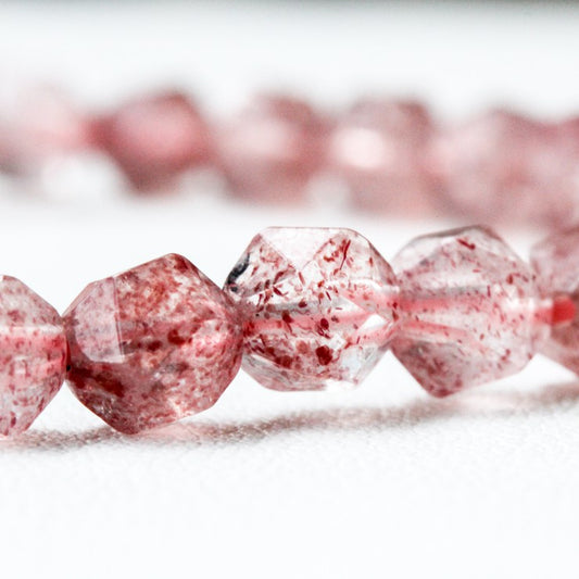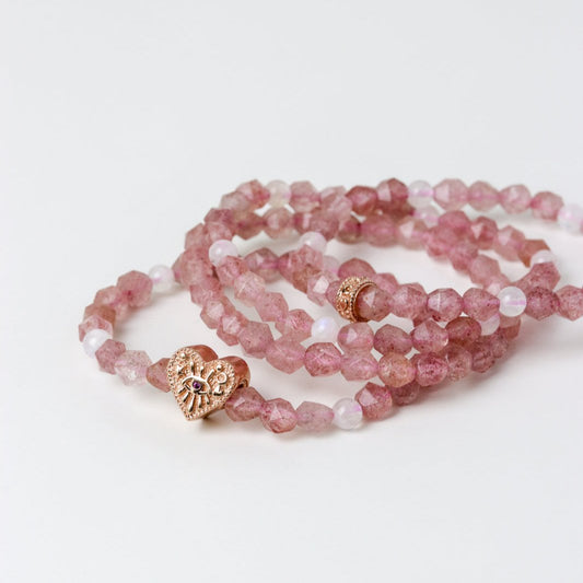 Strawberry Quartz diamond cut and Moonstone Beads Bracelet