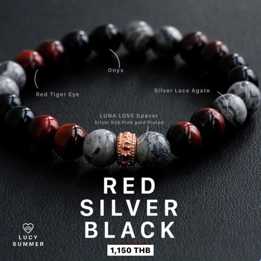 RED SILVER BLACK / หินแท้ 3 ชนิด พร้อมตัวคั่น Spacer เงินแท้ Beads Bracelet