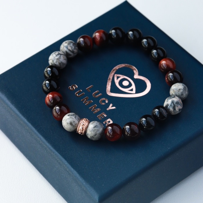 RED SILVER BLACK / หินแท้ 3 ชนิด พร้อมตัวคั่น Spacer เงินแท้ Beads Bracelet