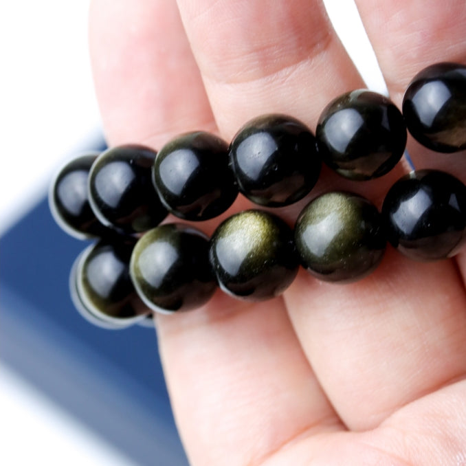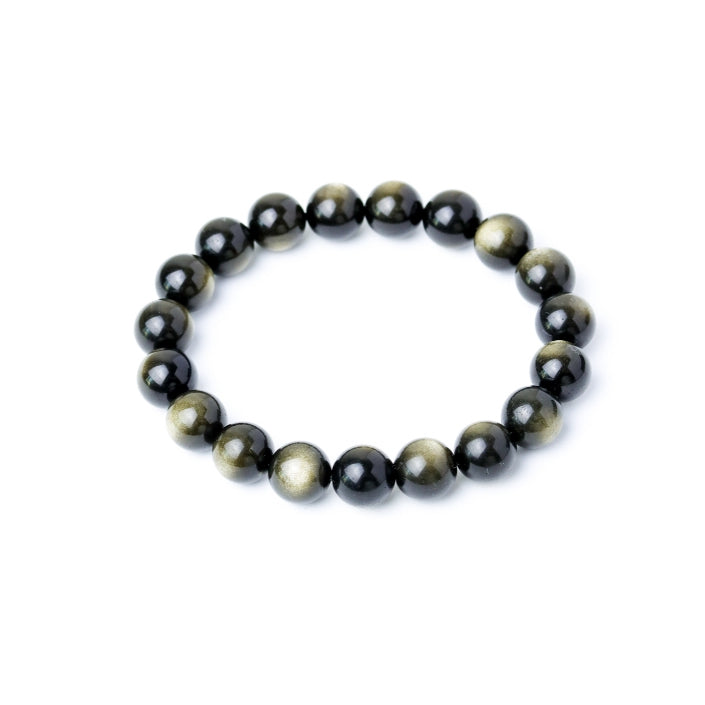 LUCY SUMMER กำไลข้อมือหินแท้ Golden Obsidian ขนาด 10 มม - ออบซิเดียน เหลือบทอง (กำไลหินแท้ รับประกันหินแท้)