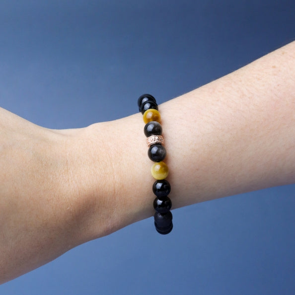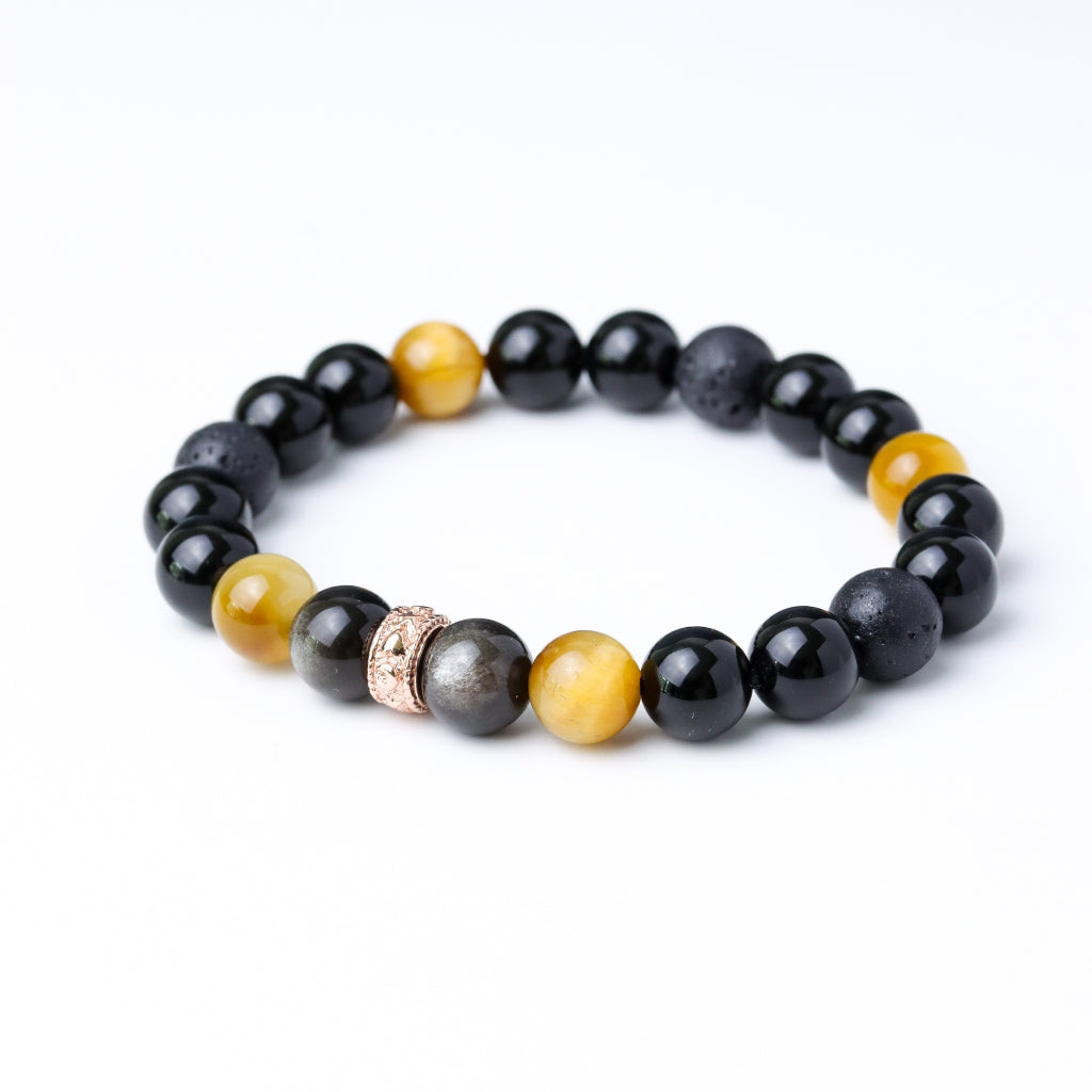 LUCY SUMMER กำไลข้อมือหินแท้ Obsidian, Golden Tiger Eye, Lava และ Onyx ขนาด 8 mm. พร้อม Spacer