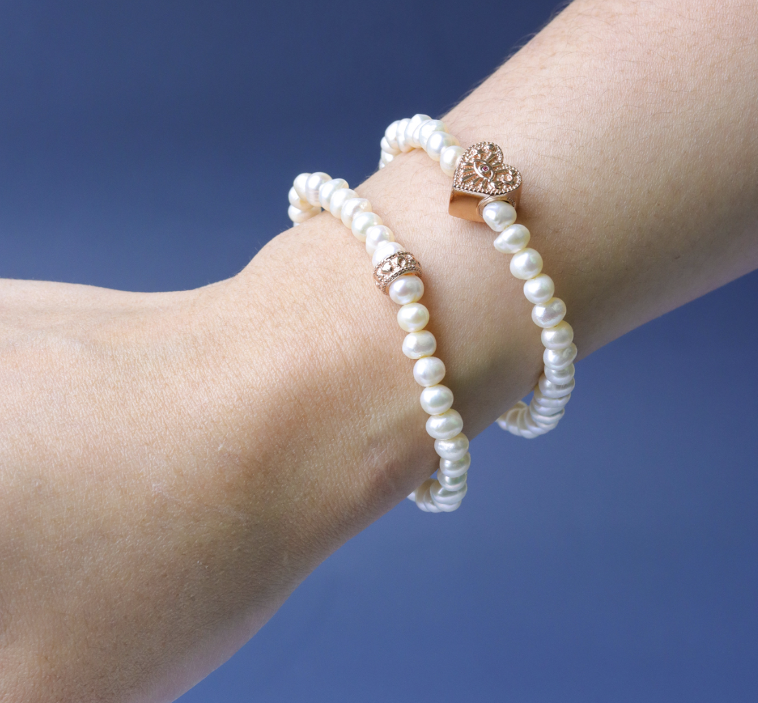 กำไลข้อมือ Pearl ไข่มุกแท้สีขาวงาช้าง เสริมด้วยจี้หัวใจและตัวคั่น Silver 925 เพิ่มความหรูหรา มีระดับ ใส่ได้ทั้งในวันสำคัญหรือแมทช์กับชุดประจำวันเพื่อยกระดับลุค