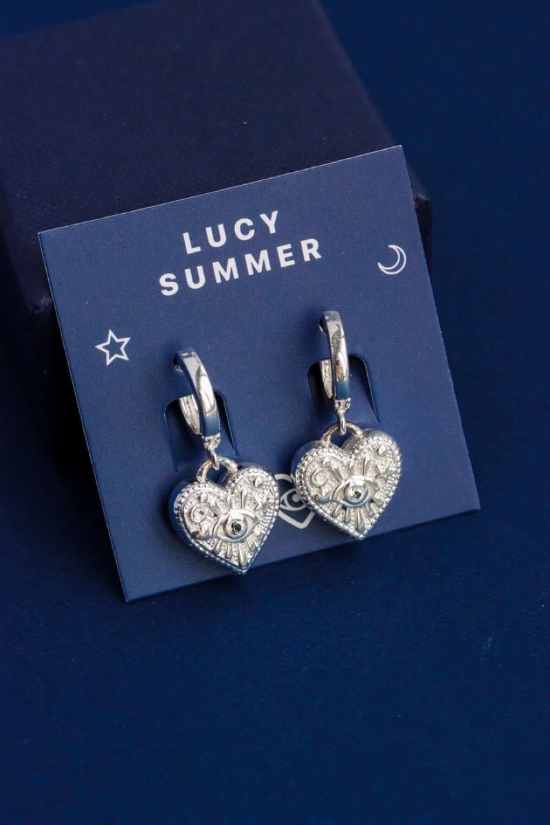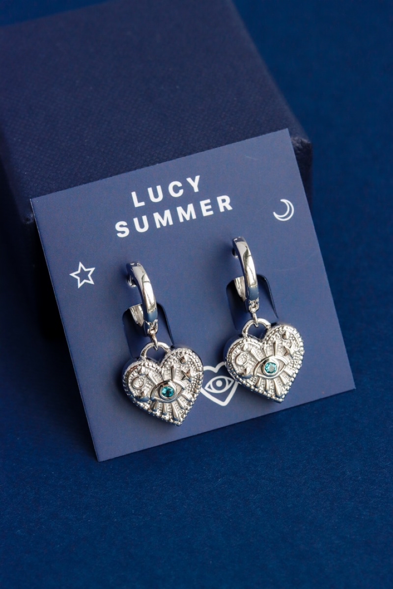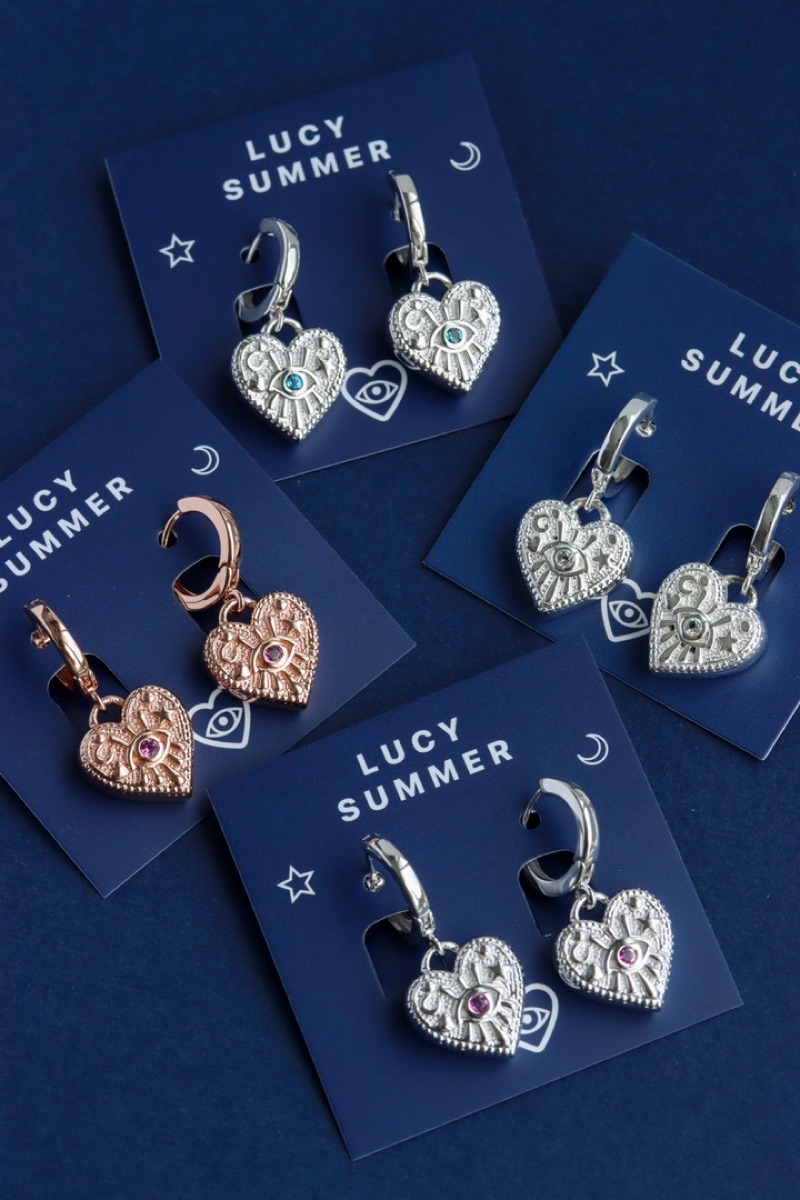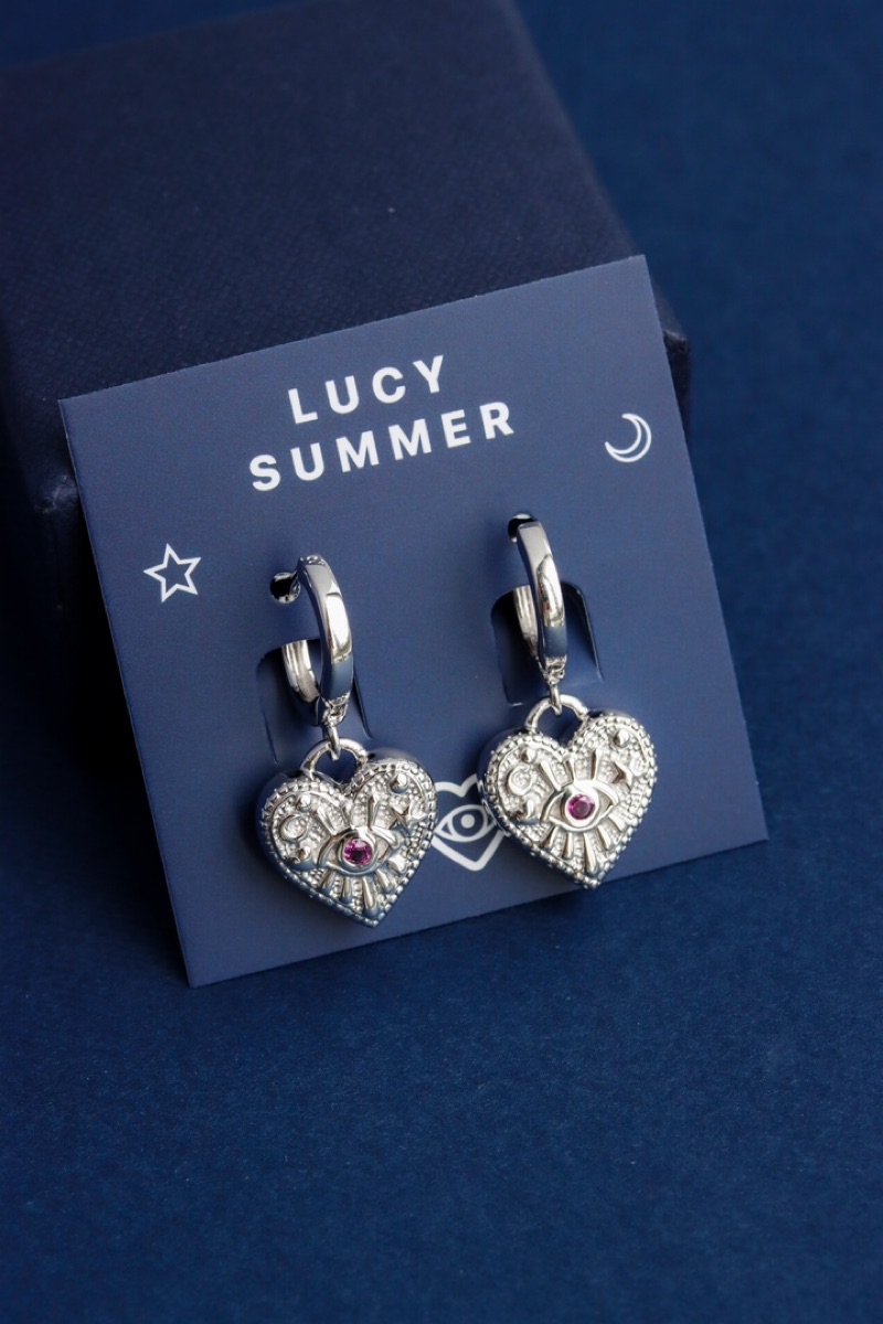 LUCY SUMMER ต่างหูห่วง ห้อยจี้รูปหัวใจ ฝังพลอย เงินแท้ (รุ่น LUNA LOVE Earrings Silver 925)