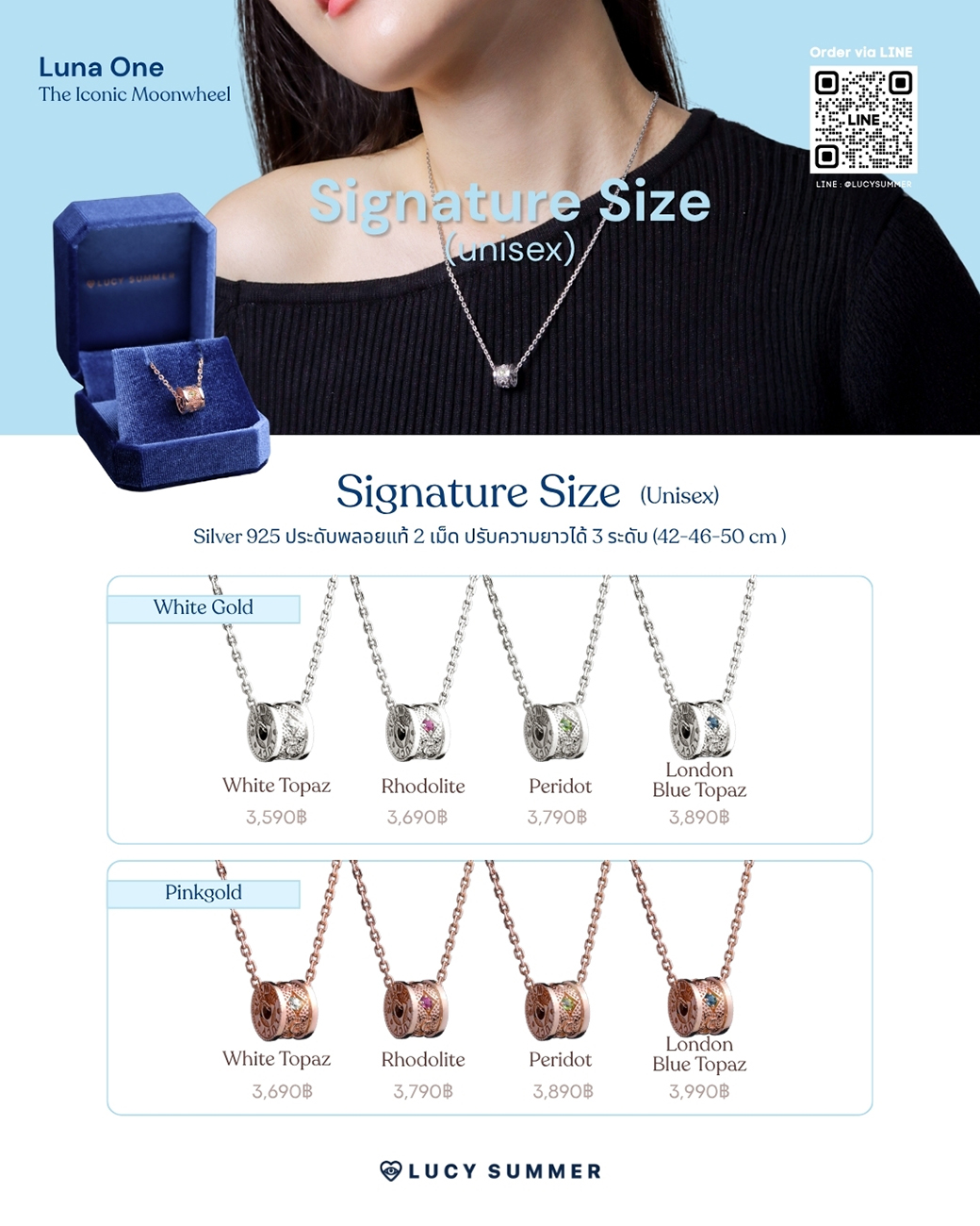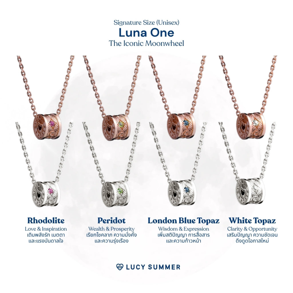 LUCY SUMMER สร้อยคอพร้อมจี้วงล้อ พลอยแท้ รุ่น LUNA ONE Necklace - Signature Size (Unisex) ตัวเรือนเงินแท้ พลอยแท้